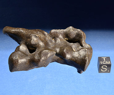 Questa strana concrezione sabbiosa ha una forma molto particolare, una superficie liscia, smussata e apparentemente brunita. Queste strane caratteristiche potrebbero portare qualcuno a pensare che si tratti di una meteorite, ma l'aspetto granuloso e l'assenza di suscettibilità magnetica ci consentono di capire che il campione è di origine terrestre.