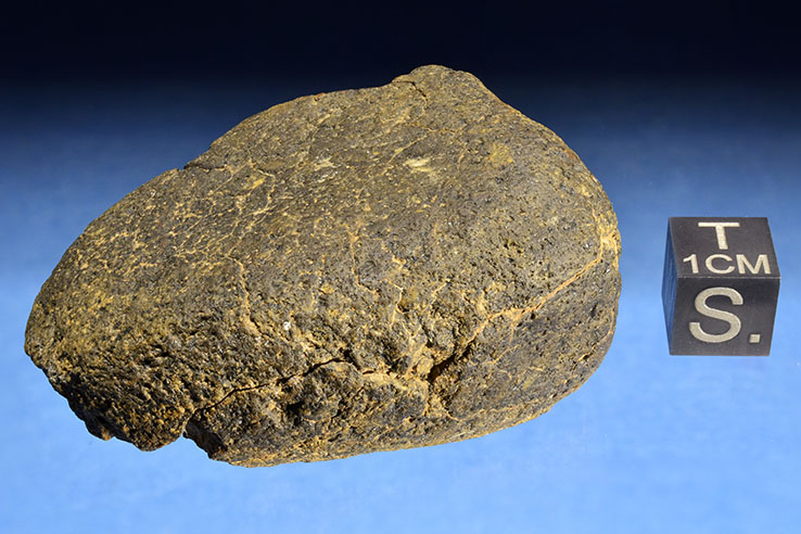 Questa particolare pietra fu raccolta in riva al mare, il colore nero, la superficie levigata ed i contorni smussati ricordano le caratteristiche estetiche delle meteoriti raccolte appena dopo la caduta. Tuttavia la superficie granulosa e sopratutto l'assenza di suscettibilità magnetica ci consenteno di capire che si tratta di una comune pietra.