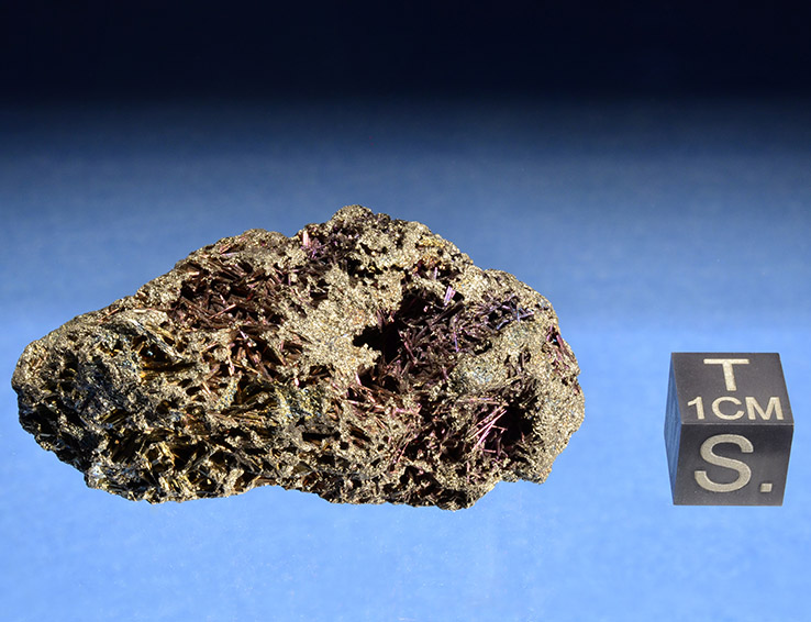 Questo strano minerale ferroso presenta un evidente aspetto metallico ed un'elevatissima densità. Dai meno esperti potrebbe facilmente essere inteso come meteorite, tuttavia la presenza di cristalli spaziati da numerosi vuoti e cavità lascia poco spazio ai dubbi.